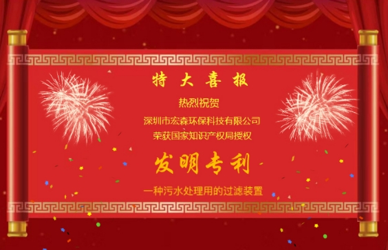 2024年,注定是一個充滿喜悅和美好的一年!在這個美好的開始,時鐘剛剛敲響新一年的鐘聲,喜訊就如春風般傳遍宏森每一個角落。我們再次迎來了又一個令人振奮的好消息:榮獲國家知識產(chǎn)權(quán)局授權(quán)的發(fā)明專利——種污水處理用的過濾裝置。這是對我們公司持續(xù)創(chuàng)新和卓越成就的高度認可,也是全體員工辛勤努力的結(jié)果。